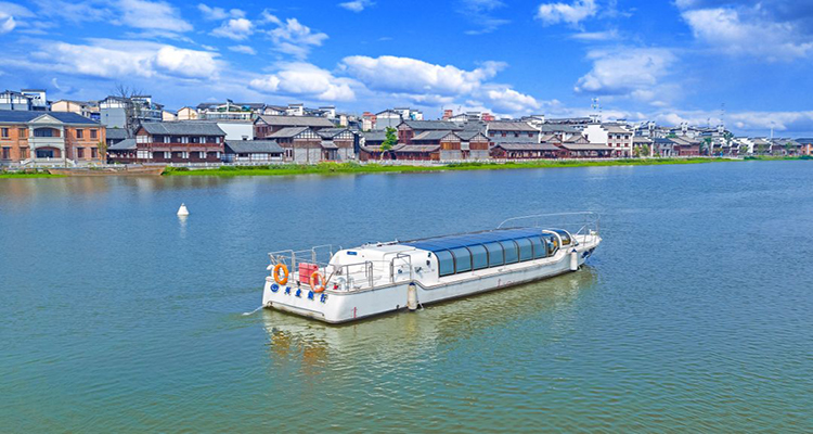 入夜,槳聲燈影里的穿紫河,一艘艘游艇載著游人溯河而上,實(shí)景劇《夢(mèng)回穿紫河》在兩岸次第呈現(xiàn),讓游人享受美輪美奐的文化洗禮。