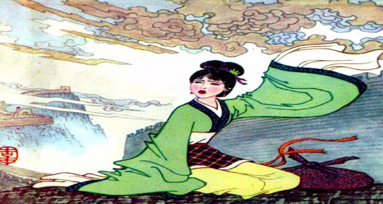 相傳嘉山腳下有一姜姓老者,生有一女,取名孟姜。孟姜成人后,一日在屋后小池塘里洗澡,被逃長(zhǎng)城役而路過(guò)此地的范喜郎偷窺。兩人一見(jiàn)傾心,私訂終身。不想新婚燕爾,范喜郎還是被官府抓走,押送邊關(guān)修筑長(zhǎng)城。由于不堪重勞,范喜郎很快死去,并被填埋在長(zhǎng)城之下。孟姜在家天天望夫歸來(lái)。過(guò)數(shù)年,孟姜決心親往長(zhǎng)城尋覓,哭倒長(zhǎng)城,獲夫骸骨,背負(fù)還鄉(xiāng),死于返鄉(xiāng)途中。鄉(xiāng)人感其事跡,修廟供奉不絕。