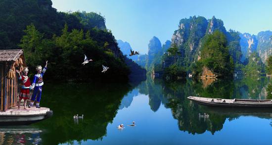 世界自然遺產(chǎn)------寶峰湖:被稱為“世界湖泊經(jīng)典”,地處張家界武陵源風(fēng)景名勝區(qū)的核心地帶,距天子山8KM,距武陵源區(qū)政府1.5KM,距黃龍洞8KM。寶峰湖風(fēng)景區(qū)集山水于一體,融民俗風(fēng)情于一身,尤以奇秀的高峽平湖絕景、“飛流直下三千尺”的寶峰飛瀑、神秘的深山古寺聞名。