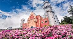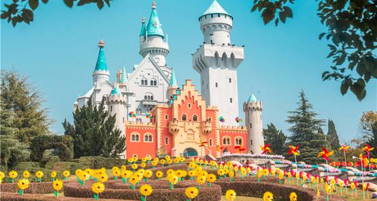 愛(ài)情谷,這里可以看到瑞士大鐘塔和歐洲小鎮(zhèn),處處都是典型的歐式建筑。右邊的丹麥國(guó)王加冕城堡,是個(gè)明星夢(mèng)工廠和恐怖城。與它相鄰的那座綠頂紅墻的建筑是荷蘭海牙國(guó)際法院,內(nèi)部是一個(gè)世界蝴蝶博覽館,在那里可以免費(fèi)欣賞到各種精美的蝴蝶標(biāo)本。左邊的湖水叫天鵝湖,取名于俄國(guó)作曲家柴可夫斯基的同名舞劇《天鵝湖》,湖邊那三座高大的風(fēng)車是荷蘭的象征。右邊地上的泉眼是旱噴泉,在旱噴泉上方的建筑是意大利圣三山教堂,它與原型比例是1:1.5,每年都有許多對(duì)新人在這里舉行西式婚禮。這里還有一個(gè)歐洲小鎮(zhèn)仿建的是德國(guó)和法國(guó)民居,比例為1:1的歐式風(fēng)格,被開(kāi)放成商場(chǎng)和服裝出租點(diǎn)。